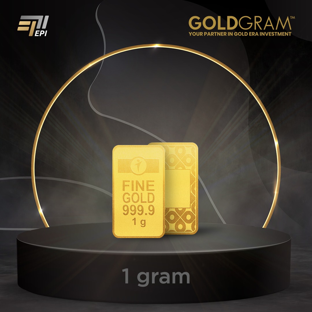 Logam Mulia GoldGram dalam bentuk Bar Fine Gold dengan kadar kemurnian: 999.9, berat 1 gram