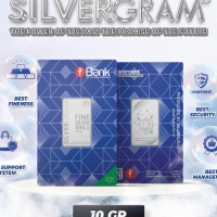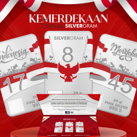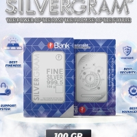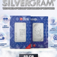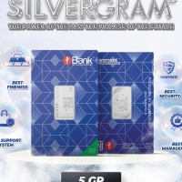Logam Mulia SilverGram dalam bentuk Bar Fine silver dengan kadar kemurnian : 999.5, Berat 1 Gram, Dimensi : 13 x 7.8 x 0.6 mm, Packaging PVC Card